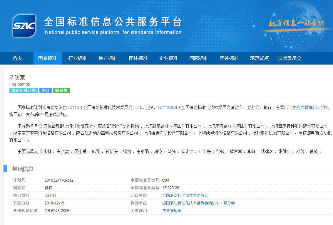 歷時(shí)三年,GB6245《消防泵》國(guó)家標(biāo)準(zhǔn)進(jìn)入審查階段,三年間,標(biāo)準(zhǔn)修訂工作組征集各單位及行業(yè)專家意見,并召開兩場(chǎng)討論會(huì),最終確定了送審稿及編制說(shuō)明。上海成峰作為國(guó)內(nèi)專注于生產(chǎn)消防泵的企業(yè)與行業(yè)專家共同參與、探討、見證了此次新標(biāo)的制定。