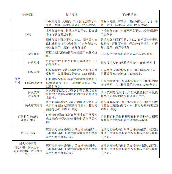 防火門 技術(shù)要求和不合格判定